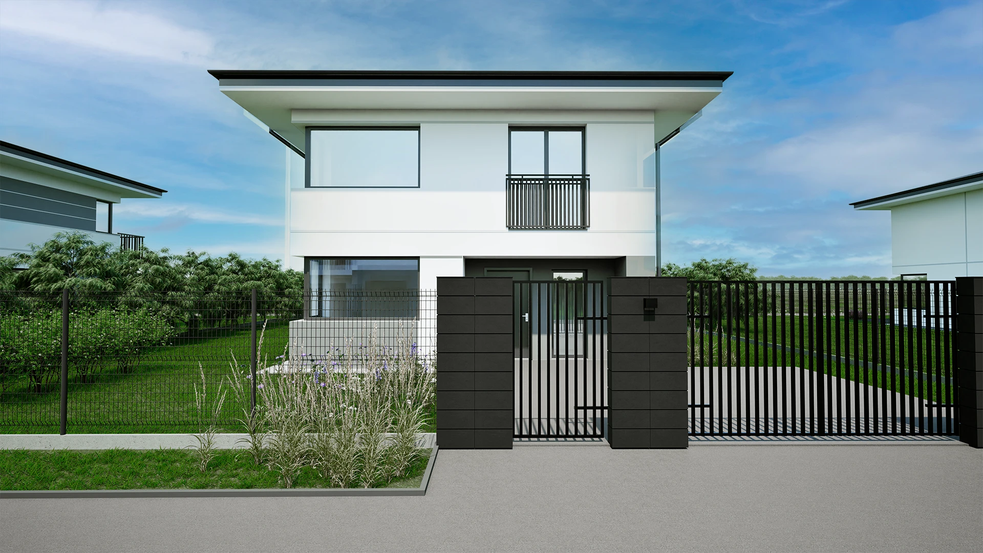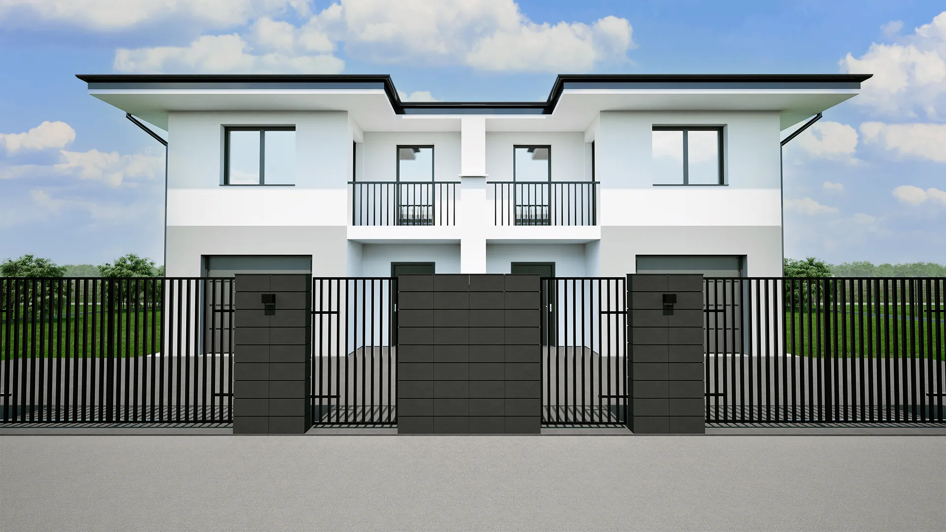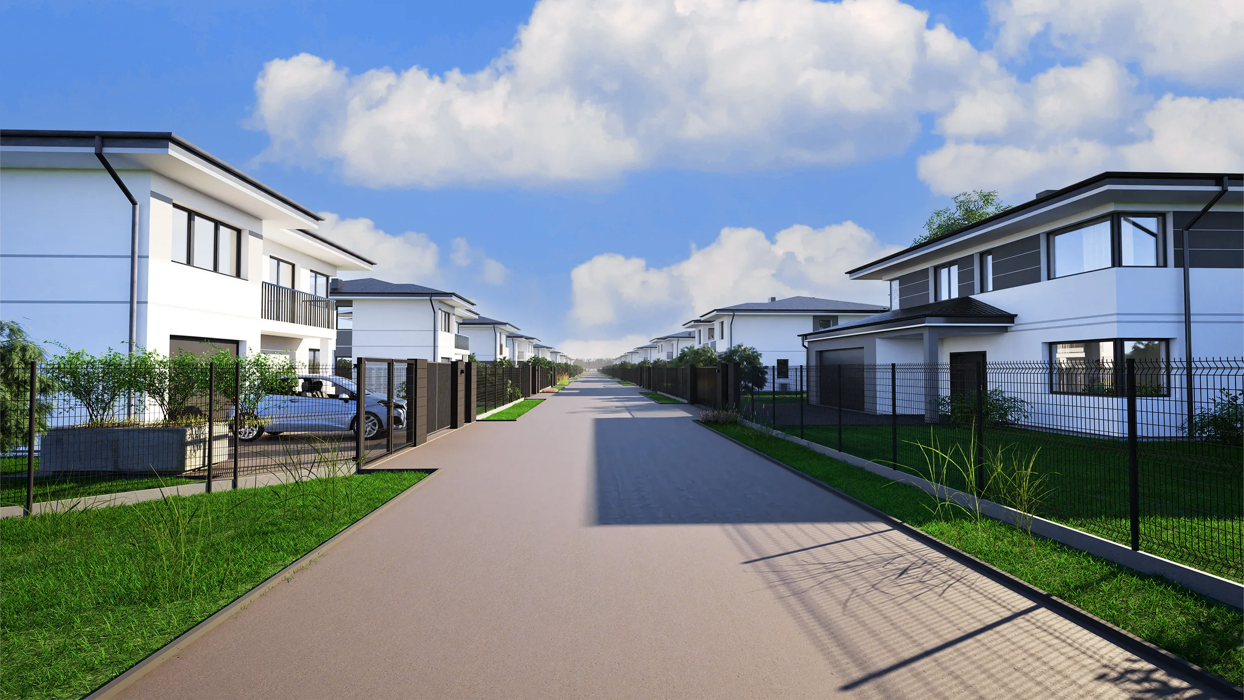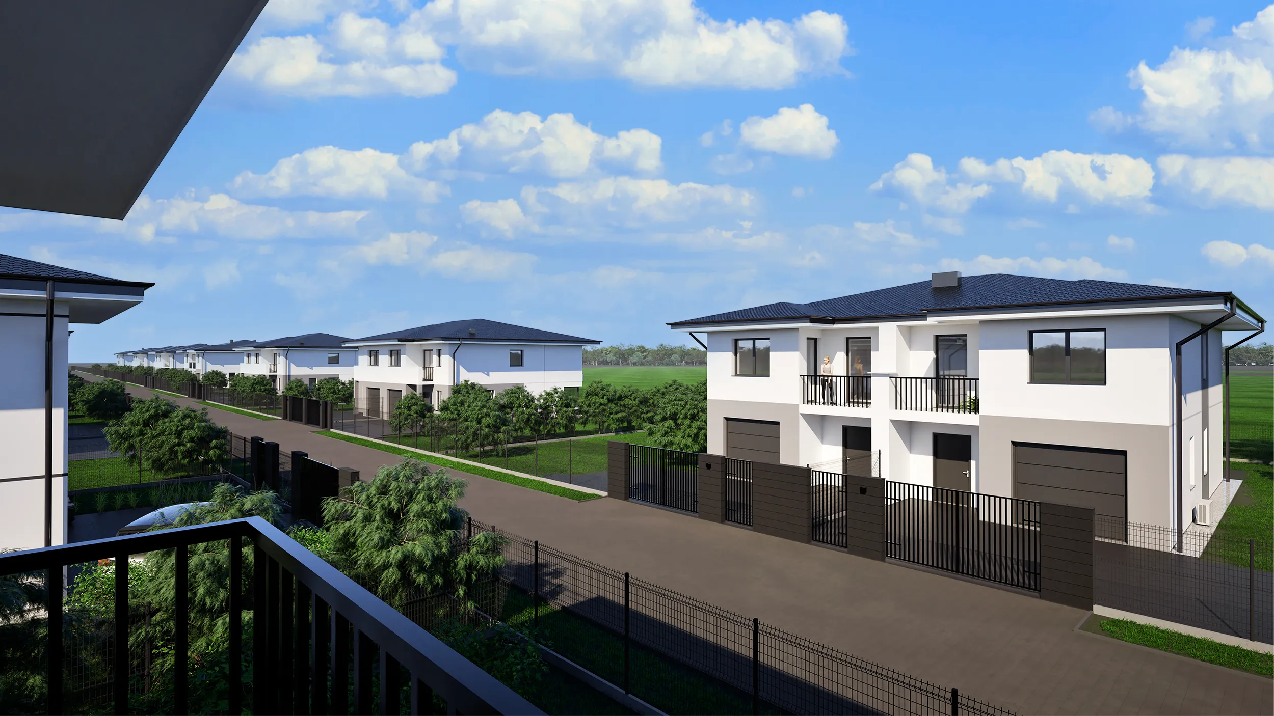 Osiedle o wygodnym układzie funkcjonalnym. W nowoczesnej i prostej dobrze doświetlonej bryle, w której jasne wykończenie elewacji, grafitowe dachy i okna sprawią, że domy będą prezentować się bardzo efektownie oraz będą idealnie wpasowywać się we współczesne trendy.