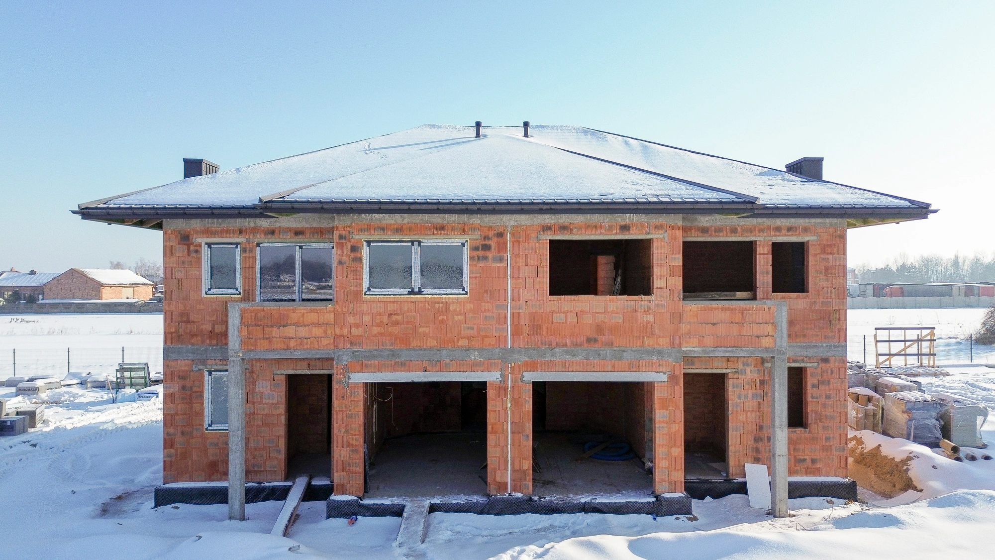 - Pokrycie: blachodachówka płaska.